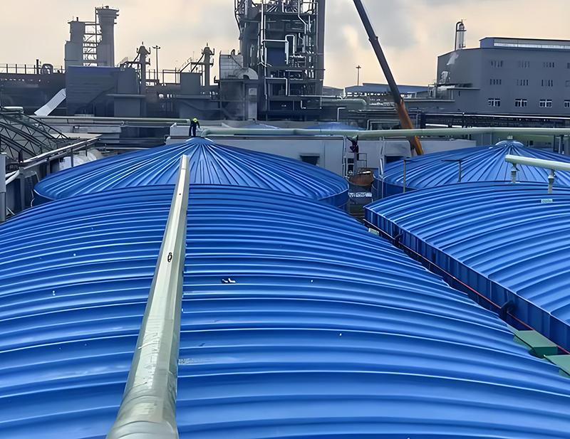 2、轻质高强:比重仅为钢材的1/3–1/4,但强度高,便于运输、安装,尤其适合大跨度池体。